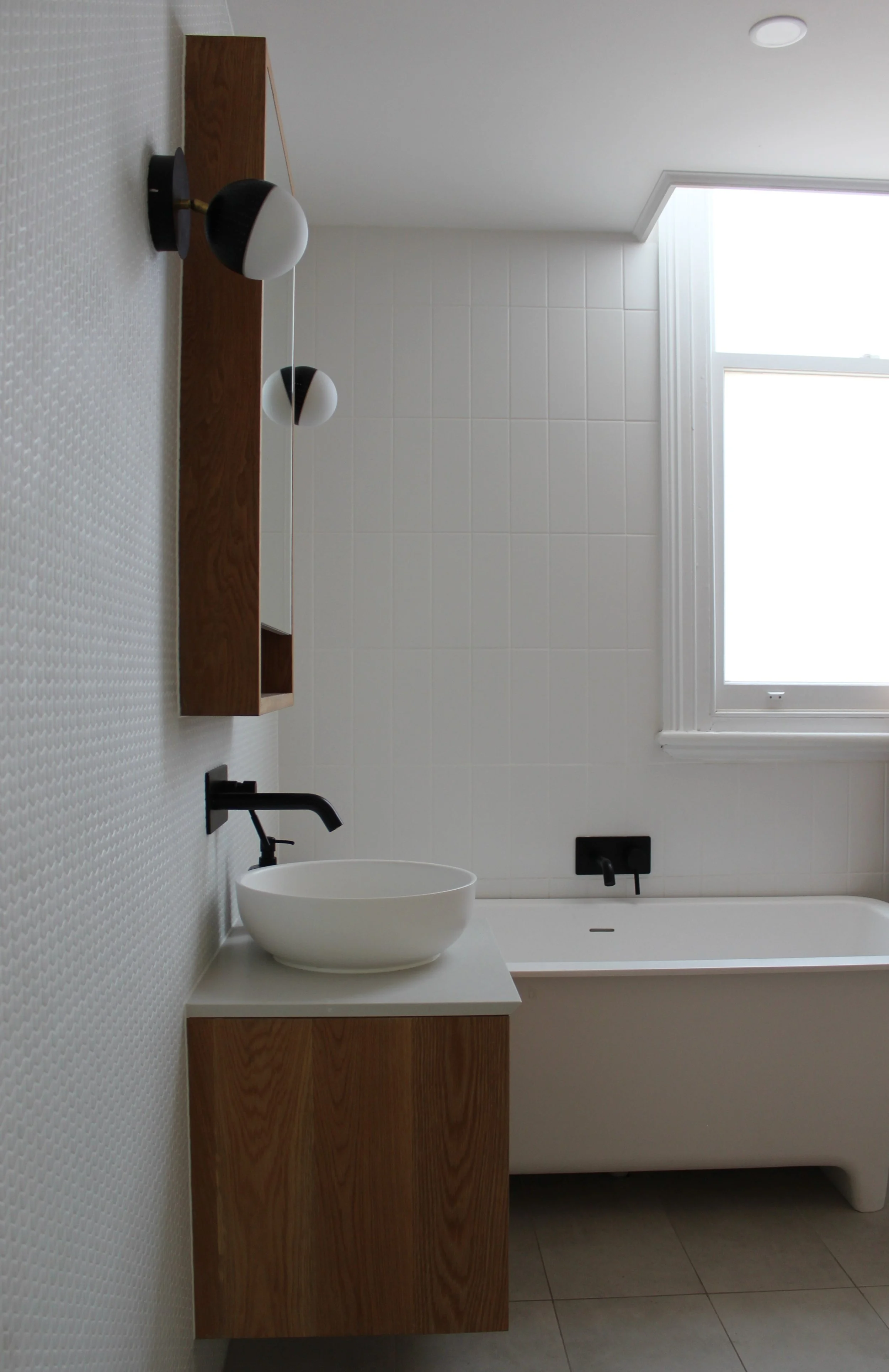 Farmers Cottage was a renovation project with full interior and facade design. The floor plan was reimagined by creating an open plan living and dining area for modern living that connected to the outdoors, relocating the bathroom and laundry, adjusting the staircase to code and creating a separate powder room.